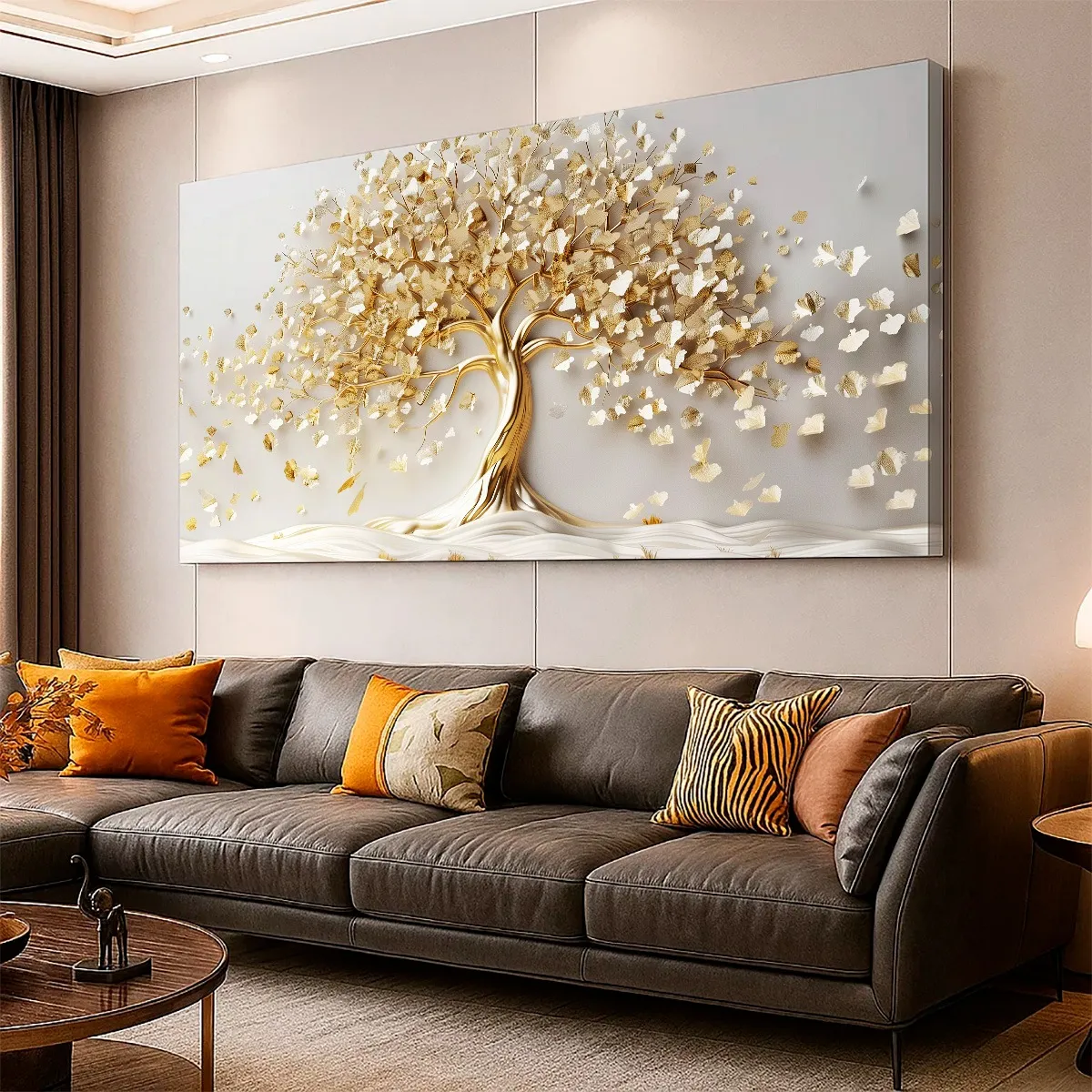 Quadro Arvore Da Vida Grande 130×70 Luxo Sala Ouro Gold Tela Dourado