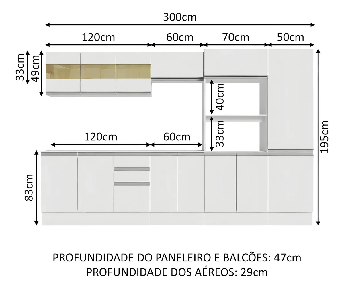 – 47 cm de profundidade nos módulos inferiores e 29 cm nos aéreos