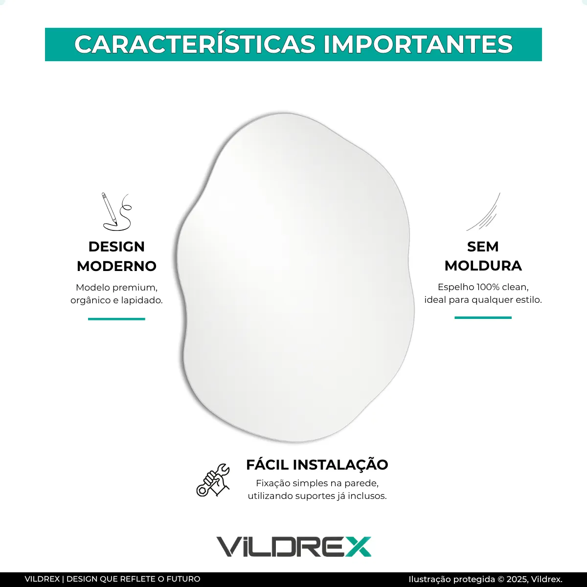 Espelho em vidro de alta resistência, bordas lapidadas para evitar cortes, embalagem reforçada e envio imediato.