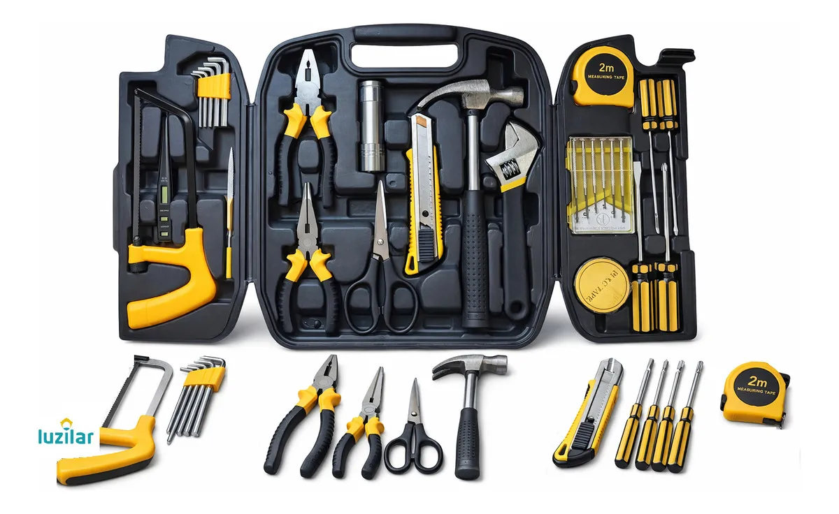 CONJUNTO DE FERRAMENTAS 169 PEÇAS MULTIUSO COM SOQUETES E PARAFUSADEIRA 3/8 THE BLACK TOOLS Produtos na Embalagem: – 01 Jogo de Ferramentas Com 129 Peças em Aço Reforçado TBT129 The Black Tools – 01 Jogo Chave Soquete C/catraca Reversível 40 Peças – The Black Tools – 01 Parafusadeira Furadeira 3/8 10mm Sem Fio Bateria 12v Bivolt TB-12E The Black Tools DESCRIÇÃO: KIT FERRAMENTAS MULTIUSO 129 PEÇAS TBT129 – The Black Tools O Jogo de Ferramentas da The Black Tools com 129 Peças é projetado especialmente para uso em domestico e hobista.; As peças são produzidas de acordo com padrões internacionais. As ferramentas são feitas de aço, oferecendo durabilidade e resistência. VANTAGENS: – Permite uso para realizar reparos em apartamentos e casas de campo, reparar aparelhos de uso doméstico e equipamentos de jardim, entre outros; – Bits, bits-inserções e chaves de fenda são feitos de aço S2; – As peças são acondicionadas em uma maleta plástica. – 08 Chave Allen (pol.): 1/16 – 5/64 – 3/32 – 1/8 – 5/32 – 3/16 – 7/32 – 1/4″; – 08 Chave Allen (mm): 1,5 – 2 – 2,5 – 3 – 4 – 5 – 5,5 – 6mm; – 05 Parafusos máquina, cabeça redonda, com porca sextavada; – 10 Parafusos 6mm com cabeça chata, zincados, Phillips; – Martelo unha 250g com cabo metálico emborrachado; – Cabo anatômico com catraca para bits; – 04 bits Tork: T10 – T15 – T20 – T25; – 46 Pregos de aço com cabeça 20mm; – Alicate Bico Meia Cana Reto 6,5”; – 04 bits Allen: H3 – H4 – H5 – H6; – 03 bits Phillips: PH1– PH2 – PH3; – Chave ajustável (inglesa) de 6”; – Nível 9” (230mm) com 3 bolhas; – 03 bits Pozidrive: 0 – 1 – 2; – Alicate Corte Diagonal 6,5”; – 02 bits quadrados: S1 – S2; – Alicate Prensa Terminal; – 03 bits Fenda: 3 – 4 – 5; – 04 Chaves de precisão; – Trena (3,5m x 12mm); – Estilete 9mm; – 01 adaptador; – 04 Ganchos. JOGO DE SOQUETES COM CATRACA REVERSÍVEL 40 PEÇAS: – 10 Soquetes Sextavado: 3/16 – 7/32 – 1/4′ – 9/32 – 5/16 – 11/32 – 3/8 – 13/32 – 7/16 – 1/2′; – 10 Soquetes Sextavado: 4 – 4,5 – 5 – 5,5 – 6 – 7 – 8 – 9 – 10 – 11mm; – 03 Soquetes de encaixe de 3/8′: 12 – 13 – 14mm; – 01 Extensão para soquetes de 3 encaixa 3/8; – 01 adaptador fêmea encaixe 1/4′ sextavado; – 03 Soquetes estriados: 1/4′ – 5/16 – 3/8; – 01 adaptador macho encaixe 1/4 sextavado; – 01 Chave catraca Reversível encaixe 3/8; – 01 Cabo fenda para soquetes encaixe 1/4; – 03 Bits phillips 25mm: PH1, PH2 e PH3; – 02 Bits pozidrive 25mm: PZ1, PZ2; – 02 Bits de fenda 25mm: 5,6mm; – 01 adaptador 3/8 para 1/4′. PARAFUSADEIRA E FURADEIRA 12V LÍTIO BIVOLT TB-12E – The Black Tools: Para quem busca praticidade e efetividade nas diversas tarefas manuais, a parafusadeira e furadeira é a solução. Com design único e exclusivo, uma ferramenta compacta, robusta, ideal para você. Vem com mandril de aperto rápido e design ergonômico, que garante maior conforto ao utilizar. VANTAGENS: – Bivolt, opera com bateria recarregável de tecnologia lítio (Li-on), o que traz maior vida util ao produto e proporciona ter a ferramenta sempre a mão. – Somado o ajuste de velocidade, a ferramenta oferece mais produtividade e economia de tempo – Tem led indicativo de nível da bateria, que sinaliza o momento de recarregar. – O LED embutido ajuda a clarear e ter visibilidade do local de trabalho. – Possui indicador de Carga INDICAÇÃO: – Seja para apertar ou soltar parafusos, você tem o controle através do seletor de reverso, que inverte o sentido de rotação para o uso adequado a cada necessidade. – Com seletor de torque de 18 níveis para parafusar e 1 nível para perfurar, é possível ajustar para os mais adequados tipos de trabalhos a serem realizados. – Pode ser usada para materiais como: tijolos, madeiras, cerâmicas, metais entre outros. ITENS INCLUSOS: – 01 Furadeira E Parafusadeira. – 01 Conector para bits. – 10 Bits de parafuso. – 01 Carregador. – 01 Bateria. – 04 Brocas. – 01 Maleta. – 01 Manual. CARACTERÍSTICAS: – Torque máximo (N*M): 14 (junta flexível)/28 (junta rígida). – Torque Max 14 N.M junta flexível / 28 N.M junta rígida. – Capacidade da Broca (mm): >10(Aço)/>25(Madeira). – Diâmetro do mandril 3/8” 10mm (aperto rápido ). – Rotação: 0-350/0-1350 RPM:: Baterias 1300 mah. – Velocidade variável e reversível. – Indicador de carga de bateria. – 25 + 1 opção de torque. – Empunhadura Soft Grip. – LED para iluminação. – Voltagem Bivolt. – Led Indicador de Carga da Bateria